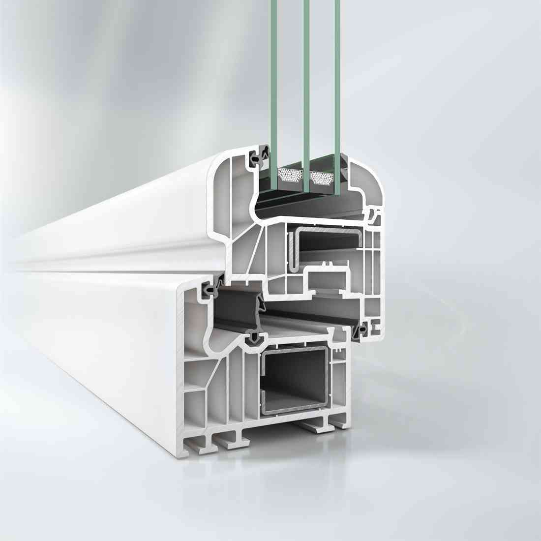 Il sistema a tripla guarnizione coniugato con la struttura ALU INSIDE e THERMO PLUS ottiene la certificazione per case passive o a basso impatto energetico. Le finestre a risparmio energetico con tre strati indipendenti di guarnizione proteggono efficacemente dai rumori, dal freddo e dall’umidità. La temperatura interna del telaio e quella dell’ambiente interno si mantengono molto simili anche nelle giornate più fredde evitando correnti e condensa. La struttura del profilo si presenta a più camere con geometria ottimizzata e profondità del telaio di 82 mm per il massimo isolamento termico con valori Uf di 0,78 W/(m²K) garantendo il minimo di dispersione termica in corrispondenza della giunzione dei bordi del vetro.